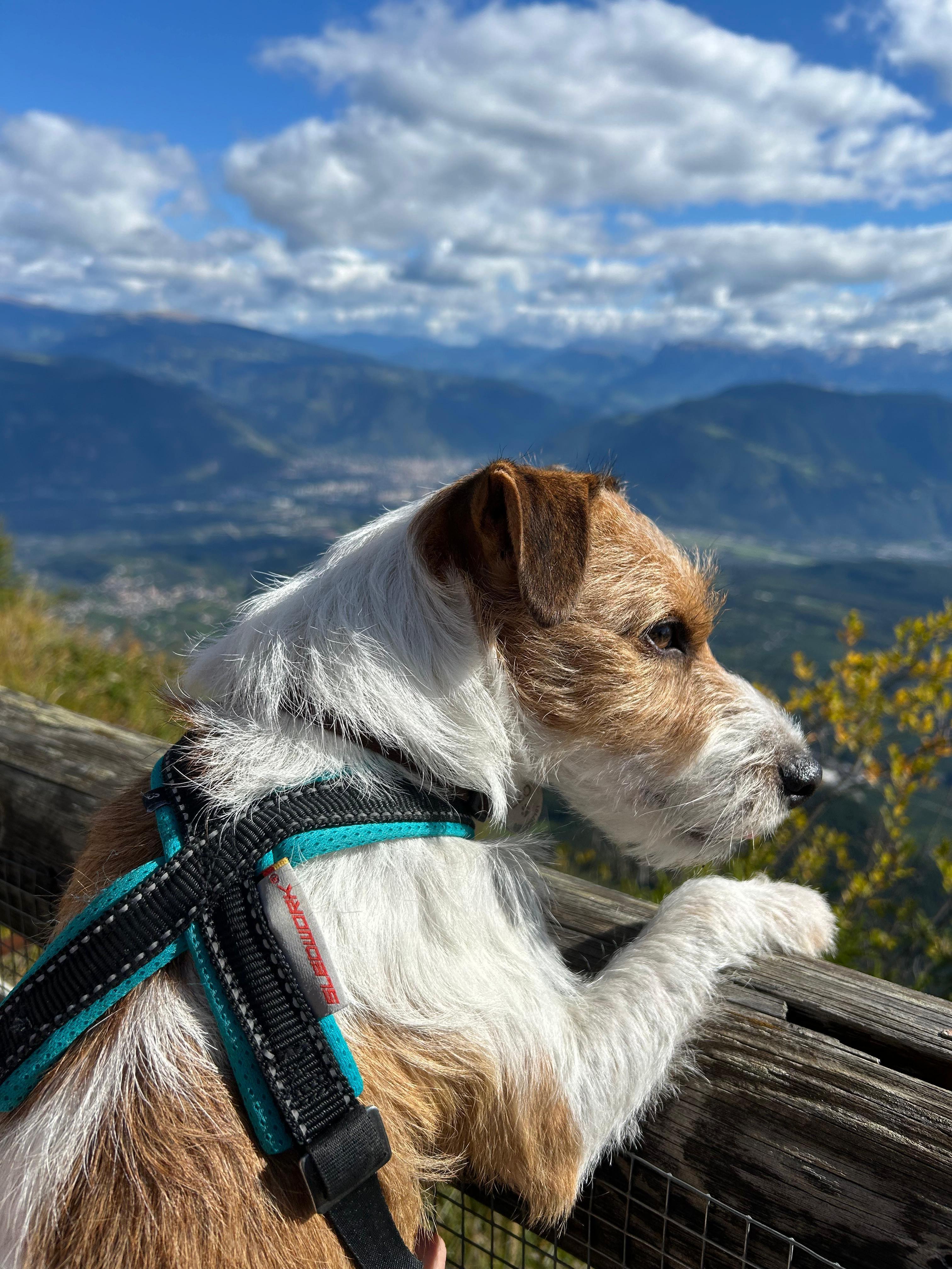 Auch im Urlaub ist er aktiv und begleitet seine Menschen begeistert auf Bergwanderungen.